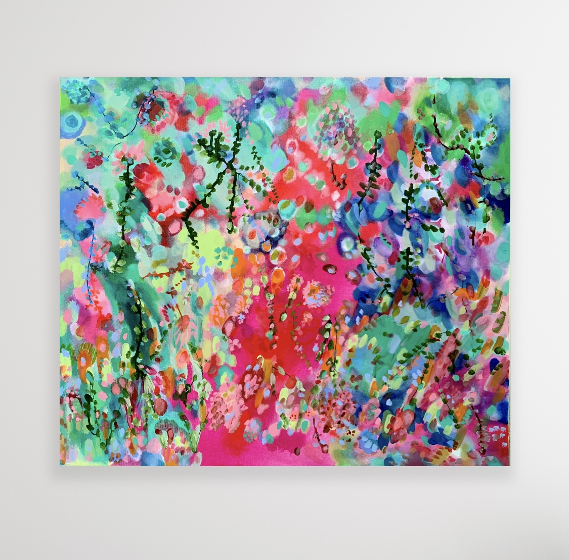 Galerie 2 zeigt ein Konglomerat unterschiedlichster abstrakter, minimalistischer, starkfarbiger und geometrischer Bilder verschiedener Formate, ausdrucksstark und strahlend. Die Drippings arbeite ich auf Anfrage in gewünschter Farbe.